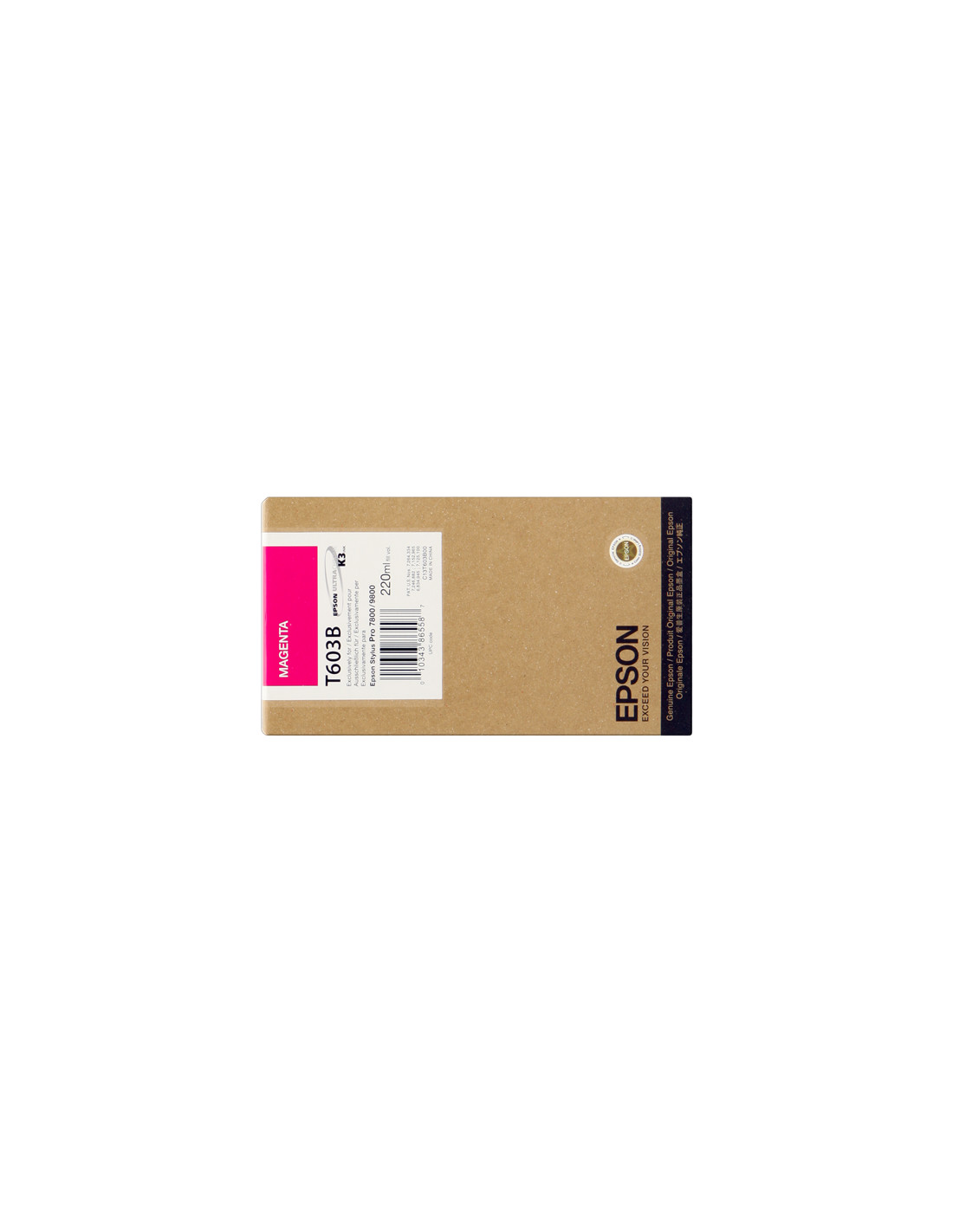 La Cartouche d'encre Epson référence C13T603B00 de couleur magenta, est donnée par le constructeur pour une capacité de 220 ml. Cette cartouche est compatible avec les imprimantes Epson Stylus Pro 7800, Stylus Pro 9800