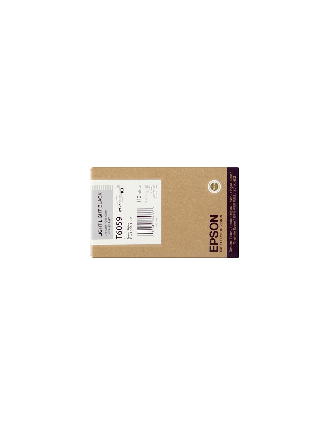 La Cartouche d'encre Epson référence C13T605900 de couleur Light Black, est donnée par le constructeur pour une capacité de 110 ml. Cette cartouche est compatible avec les imprimantes Epson Stylus Pro 4800, Stylus Pro 4880