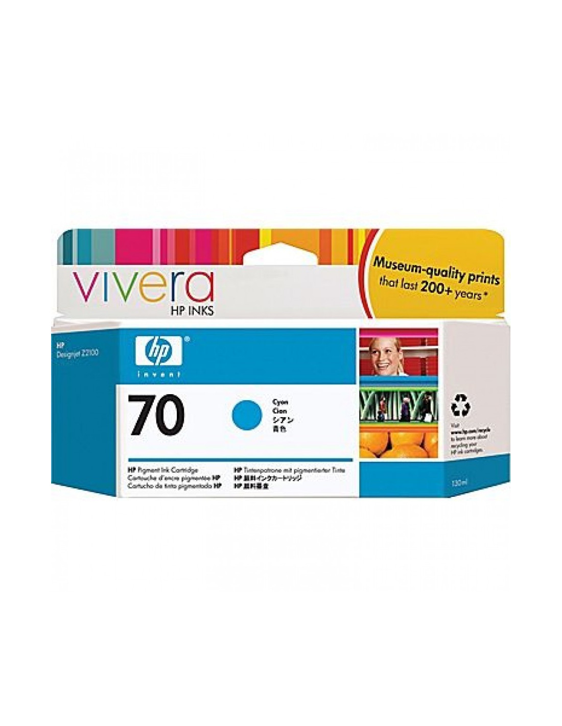 Cartouche cyan originale reference C9452A de 130 ml. En utilisant les encres pour HP Designjet Z2100, Z3100, Z3200, Z5200 optimisez la qualite, le rendu, la finesse de vos dessins ainsi que la durabilite de votre traceur HP. La nouvelle technologie de l'encre photo HP permet d'obtenir une qualite d'image exceptionnelle. L'encre pigmentee stabilisera la vivacite et la profondeur des couleurs pendant plus de 200 ans.