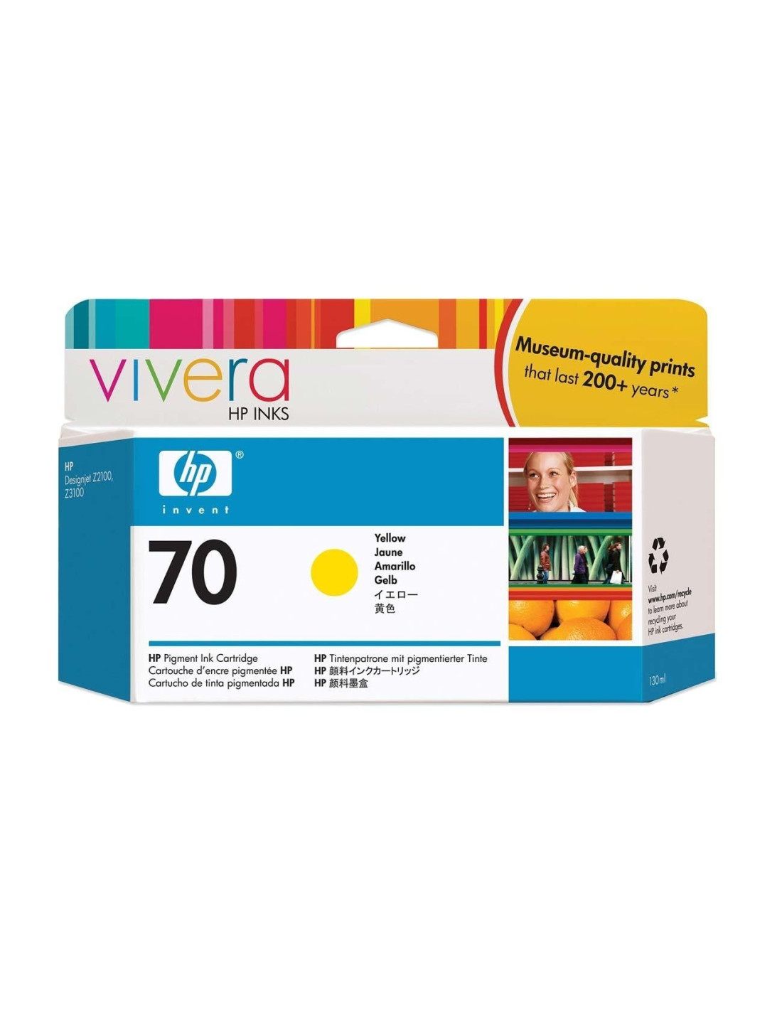 Cartouche jaune originale reference C9454A de 130 ml. En utilisant les encres pour HP Designjet Z2100, Z3100, Z3200, Z5200 optimisez la qualite, le rendu, la finesse de vos dessins ainsi que la durabilite de votre traceur HP. La nouvelle technologie de l'encre photo HP permet d'obtenir une qualite d'image exceptionnelle. L'encre pigmentee stabilisera la vivacite et la profondeur des couleurs pendant plus de 200 ans.