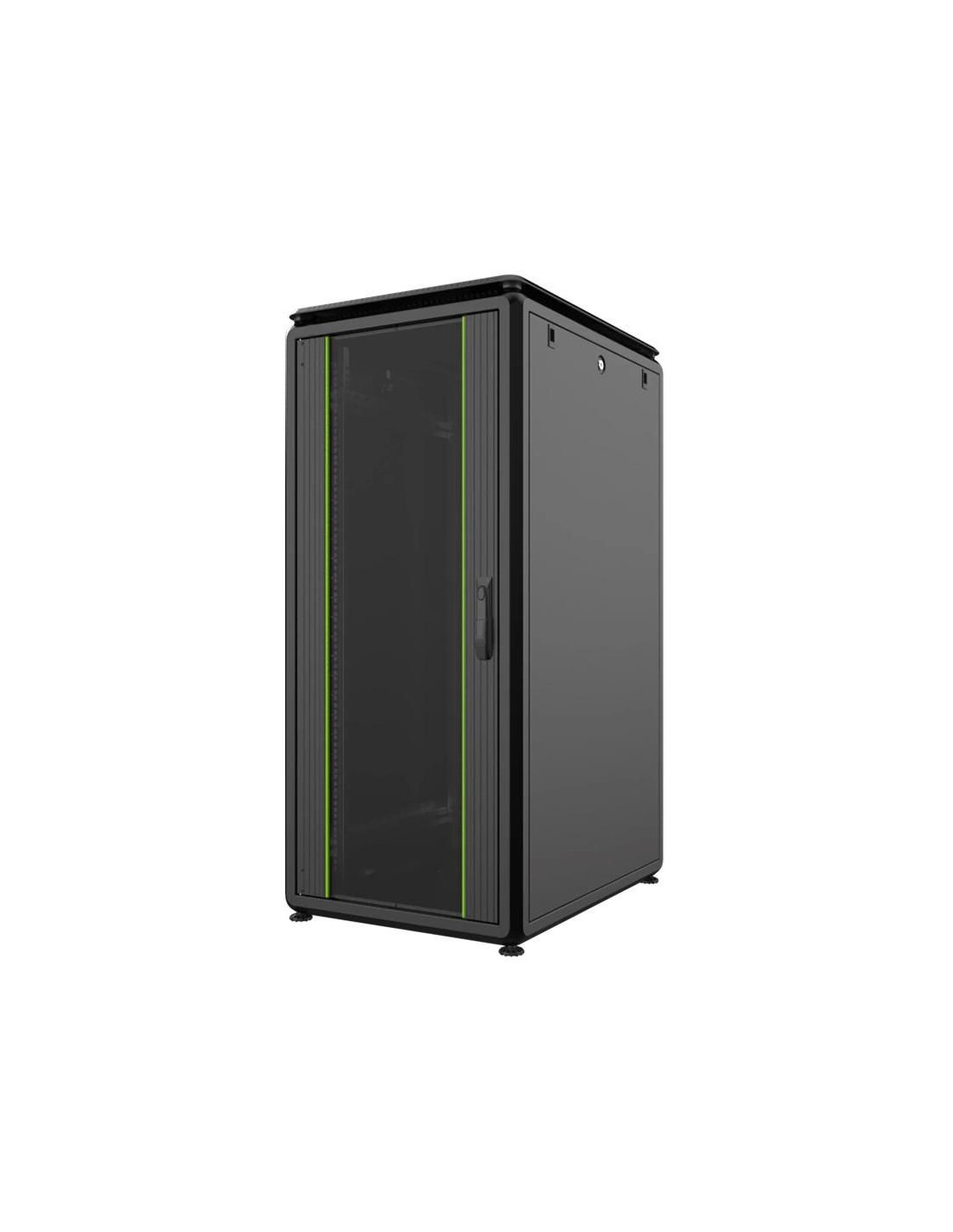 Les modules de porte avant sont dotés de portes vitrées en verre trempé de 4mm, anti-statiques et résistantes aux chocs, avec un cadre en métal décoratif. Ces portes pleines, verrouillables grâce à un mécanisme de serrure à poignée, assurent une sécurité accrue. Les côtés de l’armoire sont renforcés avec des barres en métal spéciales, verrouillables et interlockables, garantissant la protection de votre équipement.
