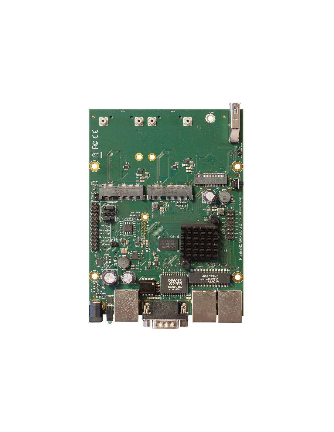 Le RouterBOARD M33G est un routeur complet de MikroTik, idéal pour une utilisation dans votre propre boîtier ou pour la création d'une solution personnalisée. Il utilise le même facteur de forme de carte de circuit imprimé et les mêmes trous de montage que ses prédécesseurs (séries RB433 et RB953).