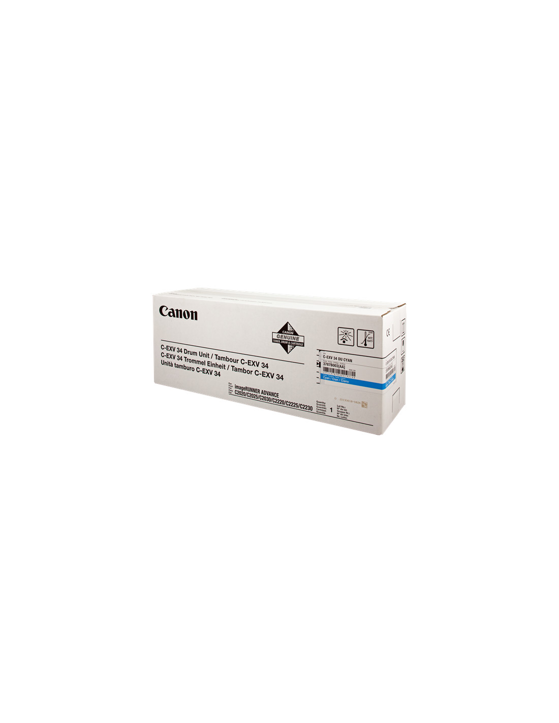 Le Tambour Canon C-EXV34drumc référence 3787B003 de couleur cyan, est donné par le constructeur pour une capacité de 36000 pages