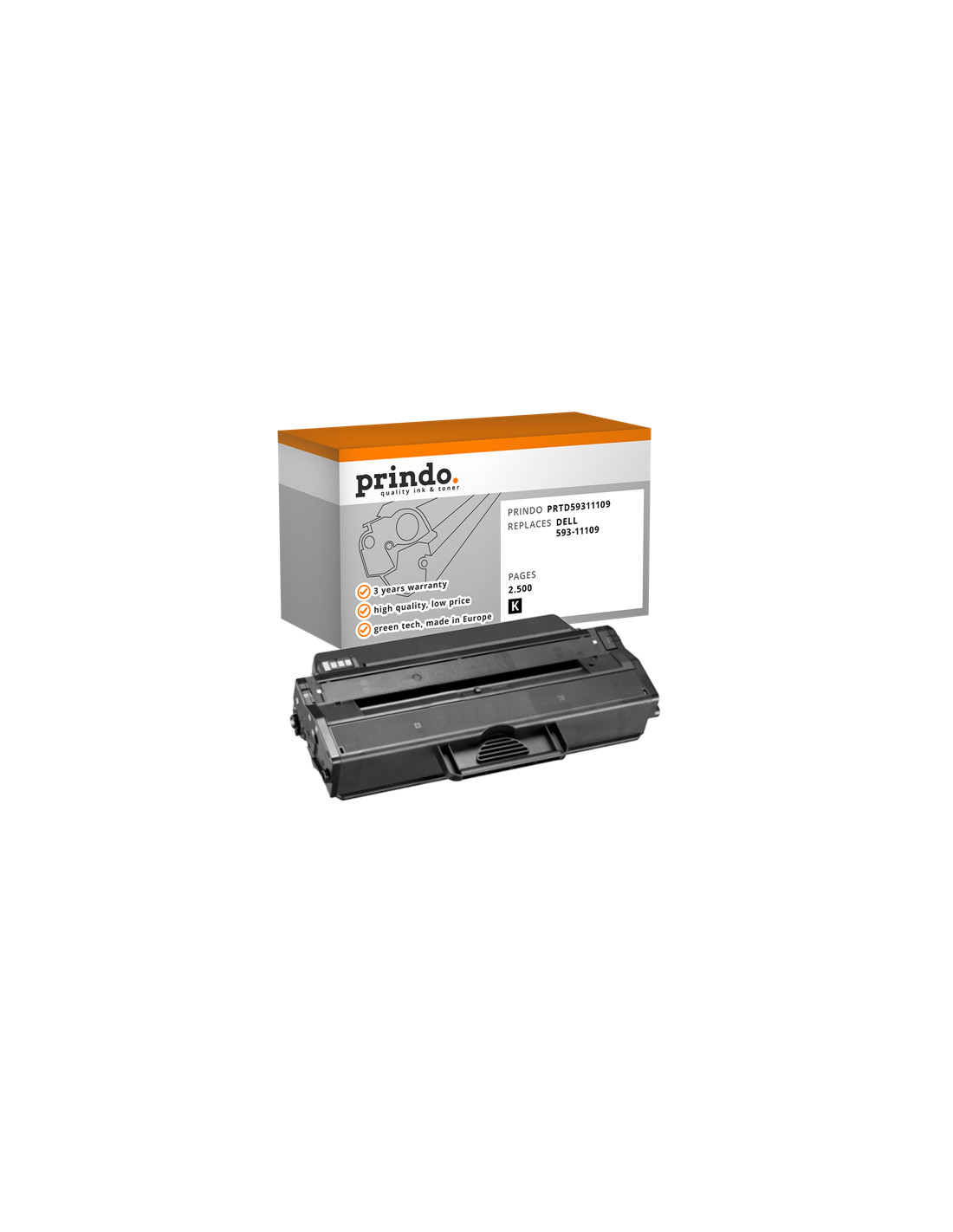 Le Toner DELL Compatible référence 593-11109 de couleur Noir, est donné par le constructeur pour une capacité de 2 500 pages