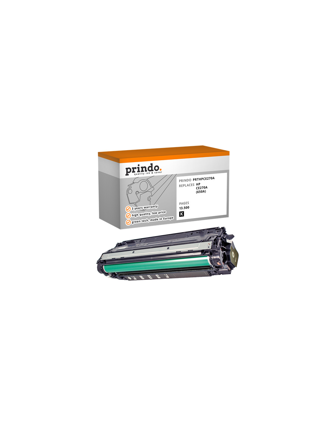 Le Toner HP Compatible référence CE270A de couleur Noir, est donné par le constructeur pour une capacité de 13 500 pages