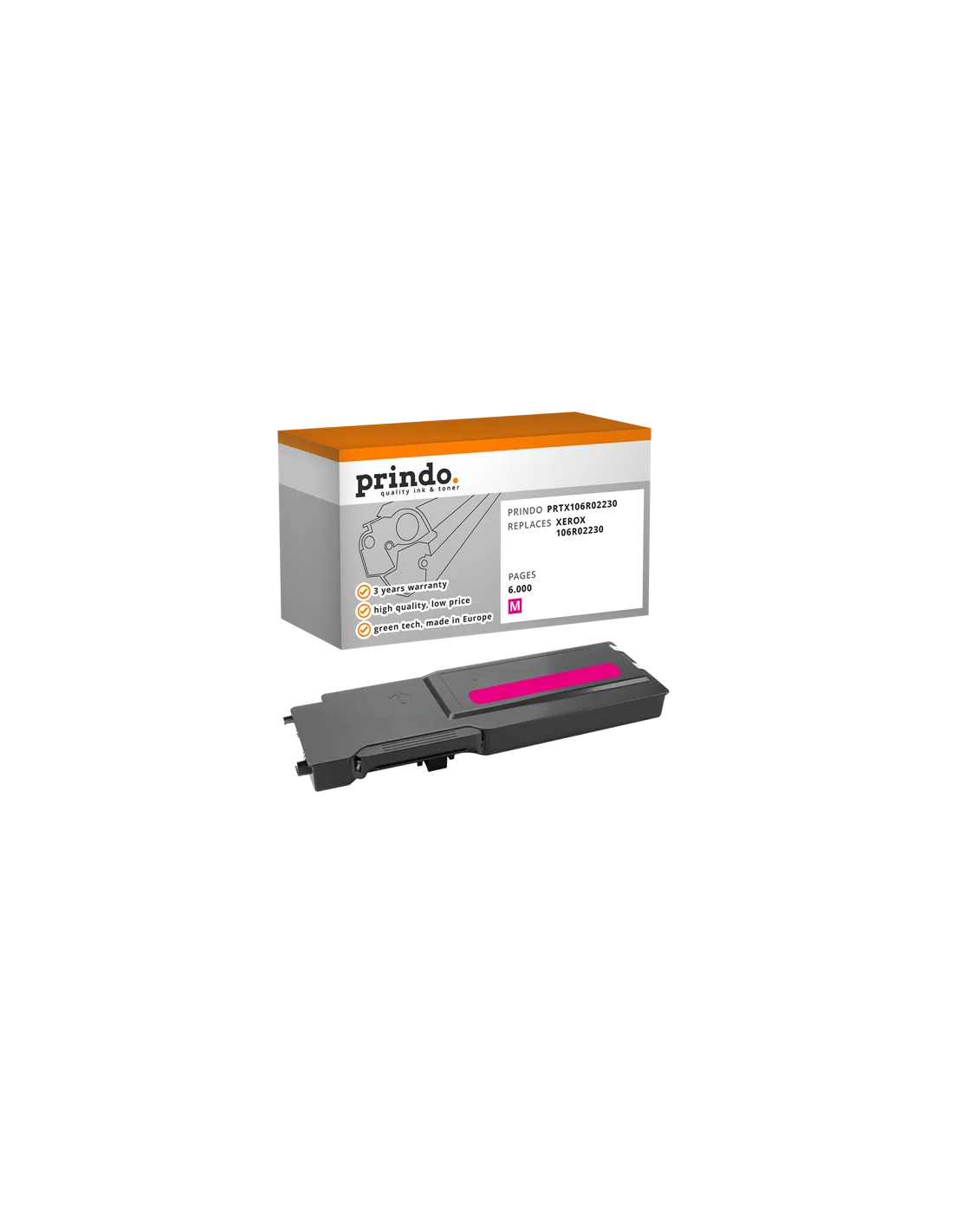 Le Toner XEROX Compatible référence 106R02230 de couleur Magenta, est donné par le constructeur pour une capacité de 6 000 pages