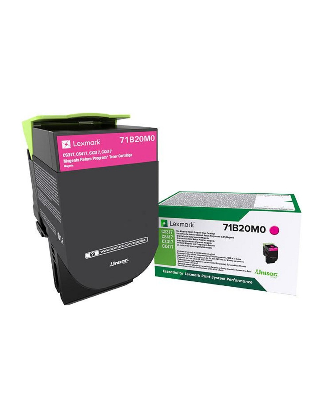 Toner Lexmark original Magenta 2300 pages, référence 71B20M0 pour imprimante CS317, CS417, CS517, CX317, CX417